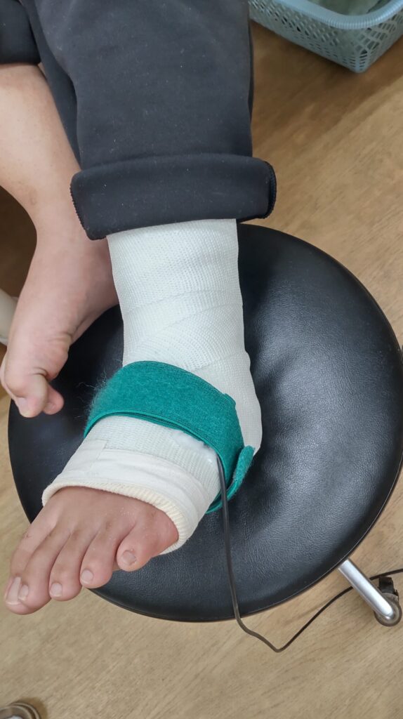 〇 足関節骨折治療例 2025年9月25日 最終更新日時 : 2026年1月10日 和家接骨院 左踵骨二分靭帯起始部裂離骨折症例。 ギプス一部有窓しLIPUS(低出力パルス超音波)治療器で8週で完治 DSC_0663 DSC_0664