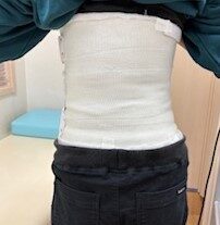 第11胸椎、第3腰椎圧迫骨折の固定装具。 しっかり体幹を固定することで疼痛管理ができ、日常生活も楽になります。